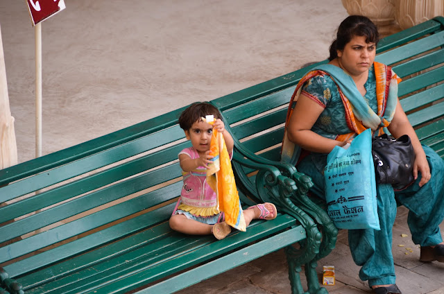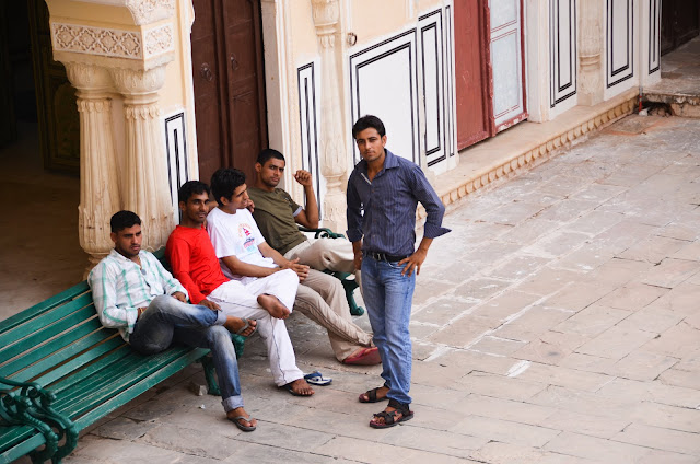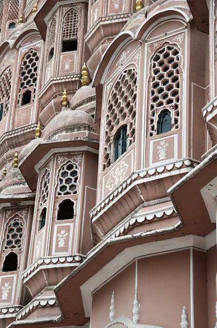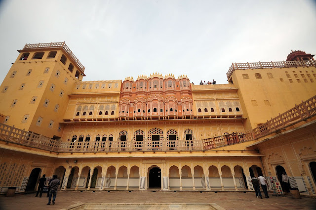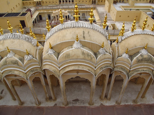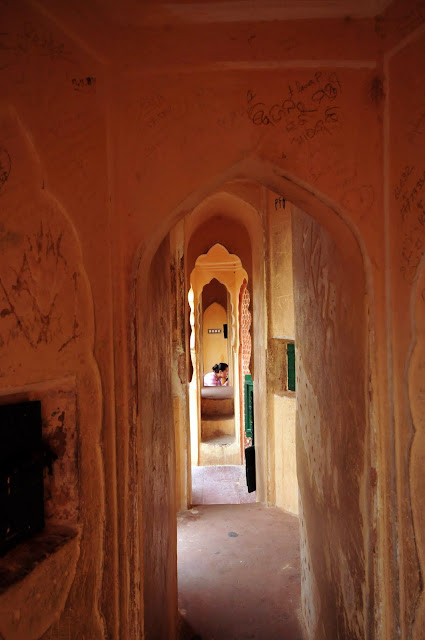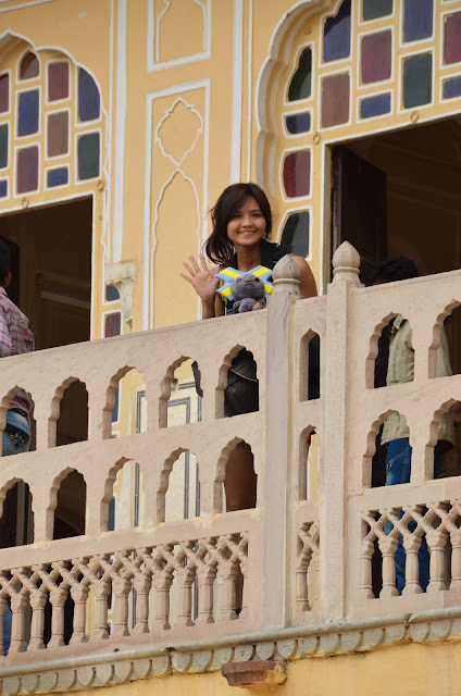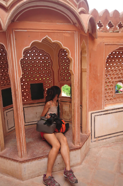風之宮殿據說共有953個窗口,當時建造這座宮殿是給宮女門偷窺外面的世界所建造的,之前查資料說這宮殿只有這一面牆可看,裡面沒啥好進去的,可是我門既然已經來了印度,乾脆就進去晃晃,看看它有多沒料~