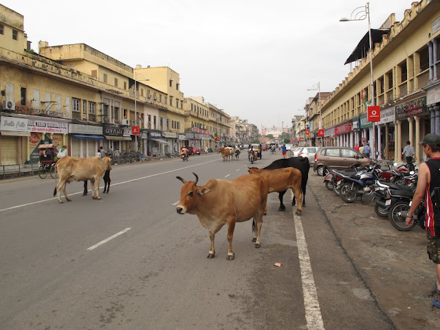 清晨四五點左右,我們便起床準備搭車前往下一站,齋浦爾,這時天色還尚未全亮,走在印度的街上處處都是躺在地上睡覺的流浪漢,開著嘟嘟車做生意的司機也都還躺在車上睡覺,好不容易我們找到了一輛嘟嘟車,和他殺價後他同意載我們到車站,但是在路上他卻臨時跑去加油還叫我們先幫他出油錢,當車子到達車站後我們便把剩餘的車錢給他,他卻說油錢是我們應該幫他付的,要求補上油錢的差價,我們理也不理他直接走進了火車站.